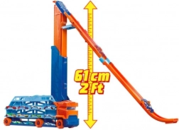 Vivez deux fois plus d’action avec un transporteur qui se transforme en piste gravitationnelle ! Le grand véhicule à six roues massives transporte et range votre collection en toute sécurité, et en un seul geste, vous le transformez en descente de 60 cm pour des courses pleines d’adrénaline.
