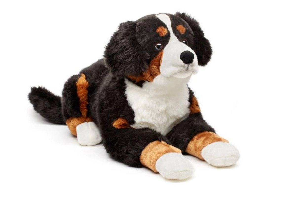 Cette peluche toute douce, inspirée de la race du bouvier bernois, séduit par sa robe tricolore authentique et son expression charmante. Grâce à sa longueur généreuse d’environ 65 cm (sans la queue), elle est parfaite pour les câlins, la déco de la chambre et comme compagnon de voyage.