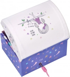 À l’ouverture de la boîte, une mélodie se déclenche pour accompagner chaque rangement et chaque découverte de trésor.