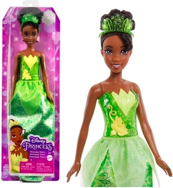 La poupée Tiana apporte aux enfants un monde de fantaisie et d’élégance royale. Vêtue de sa robe verte iconique avec un haut scintillant et une jupe amovible, elle est prête pour chaque aventure. Une tiare stylée et des chaussures complètent la tenue, faciles à retirer et à remettre.