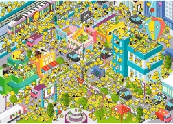 Chaque pièce du puzzle apporte la joie de l'assemblage et un défi amusant pour trouver le smiley spécifique dans un environnement urbain vivant.