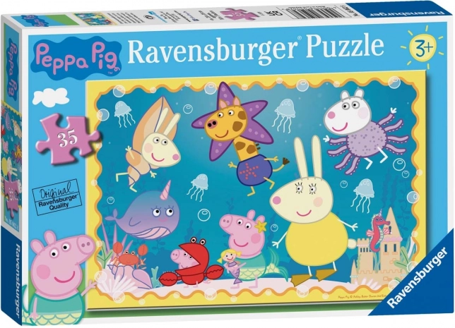 Découvrez le puzzle pour enfants Ravensburger avec le motif Peppa Pig dans le monde sous-marin. Ce puzzle de 35 pièces est idéal pour les enfants à partir de 3 ans et développe la motricité fine, la pensée logique et la patience. Sa fabrication de qualité et son motif joyeux garantissent des heures de divertissement créatif.