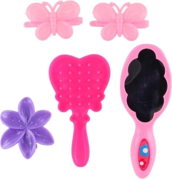 - Accessoires complets – miroir, barrettes et peigne pour le stylisme.