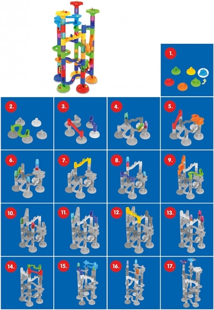 ensemble de circuit à billes de 78 pièces ! Ce coffret créatif permet aux enfants de construire différents parcours pour les billes, tout en développant leur pensée logique et leur motricité fine.