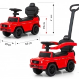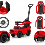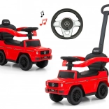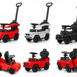 Le véhicule MERCEDES G350d sous licence Mercedes est un produit conçu avec une grande attention aux moindres détails et à la qualité des matériaux utilisés. Grâce au caractère multifonctionnel du jouet, votre enfant ne s’en lassera pas rapidement et développera ses compétences manuelles et ses capacités motrices en jouant. Un autre avantage est le volant interactif, qui rend le jeu encore plus attrayant. Le produit dispose de roues directrices commandées par le volant ou la poignée, assurant une conduite confortable lors des promenades. Il est très facile à monter et à démonter, stable et sûr. Les différents éléments (barrières et poignée) peuvent être détachés, de sorte que le véhicule « grandit » avec votre enfant.