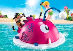 Le set comprend une île flottante en forme de poisson rose avec des détails amusants qui raviront les enfants.