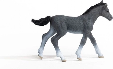 Cette figurine finement sculptée représente un cheval gris fer — poulain trakehner, dont la robe s’éclaircit avec l’âge jusqu’à devenir entièrement blanche. Les proportions fidèles, la crinière texturée et la coloration subtile soulignent le réalisme caractéristique de la marque Schleich.