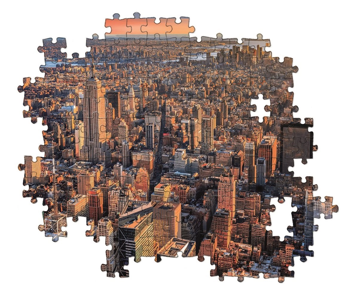 Le puzzle représente la célèbre vue urbaine de New York au coucher du soleil, idéal pour les amateurs de beauté urbaine.