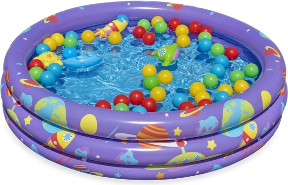 Cette piscine Bestway Intergalactic aux couleurs vives est fabriquée pour que les enfants s'amusent non seulement à l'extérieur, mais aussi en profitant de l'eau. Avec trois anneaux gonflables de taille égale avec des graphiques colorés et une capacité de 140 litres, elle apporte beaucoup de plaisir.