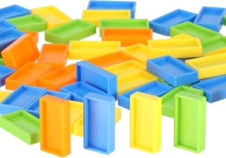 Cette locomotive colorée avec distributeur de pièces pose elle‑même les dominos à des distances fixes et signale chaque pose par un son. Les enfants peuvent facilement choisir la direction de marche en tournant la cheminée, créant ainsi des parcours et motifs variés. Les couleurs vives et le design attrayant retiennent l’attention et motivent à jouer longtemps.
