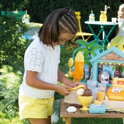 Les enfants peuvent mixer des boissons rafraîchissantes, servir des boules de glace et décorer avec des vermicelles sucrés. Des accessoires réalistes transforment chaque jeu en un petit festival estival de saveurs.