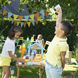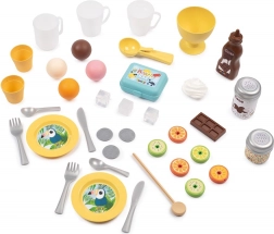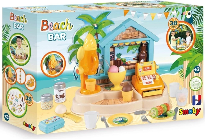 Le bar de plage SMOBY est un stand créatif pour jouer au vendeur et au client. Les enfants s’essaient à la préparation de coupes glacées, de smoothies et de brochettes de fruits, au décor avec nappages et vermicelles, ainsi qu’à l’encaissement des achats sur une caisse fonctionnelle. Les détails réalistes stimulent l’imagination, les compétences sociales et la motricité fine.