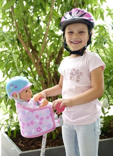 Offrez aux enfants un jeu encore plus réaliste lors des sorties en plein air. Le siège de vélo textile pour poupées NEW BORN BABY, avec son délicat motif floral, est conçu pour transporter la poupée en toute sécurité et confortablement sur le guidon d’un vélo ou d’une trottinette. La ceinture de sécurité intégrée à fermeture facile maintient la poupée bien en place, tandis que le rembourrage souple amortit les secousses.