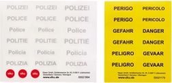Livré avec des autocollants photoluminescents signalant le danger en plusieurs langues.