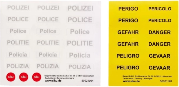 - Les flancs argentés et bleus avec bandes de signalisation jaunes peuvent être personnalisés avec d’autres autocollants de police.