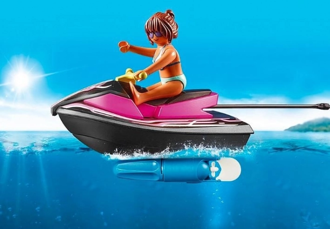 Le scooter des mers peut être équipé d’un moteur subaquatique Playmobil (vendu séparément) pour encore plus de fun dans l’eau.
