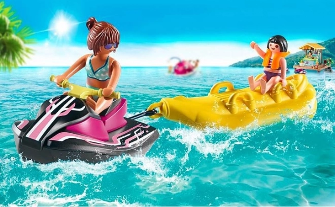 La boîte comprend des figurines d’une femme et d’une fille qui explorent l’eau ensemble sur le scooter des mers et le bateau banane. La fille est protégée par un gilet de sauvetage, garantissant sa sécurité pendant la course endiablée. Le set est une excellente introduction à l’univers fascinant de Playmobil Family Fun.