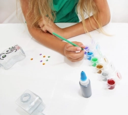 Découvrez une activité créative amusante avec le kit de peinture sur verre. Le set contient tout le nécessaire pour créer des décorations originales – 3 vases, 6 peintures pailletées, un pinceau, des strass décoratifs et de la pâte à modeler. Favorise la créativité, la motricité fine et développe l’imagination des enfants.
