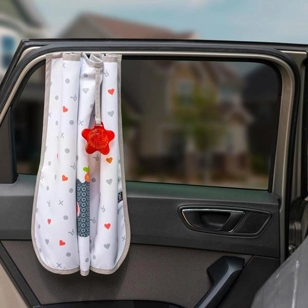 L’installation est très simple grâce à quatre aimants puissants qui fixent rapidement et solidement le pare-soleil au cadre de la porte sans ventouses ni crochets. Lorsque vous n’en avez plus besoin, vous pouvez le plier facilement et l’attacher à l’aide des sangles intégrées pour un rangement aisé. De plus, l’étoile spéciale à effet scintillant divertit les petits voyageurs, rendant le trajet plus agréable.