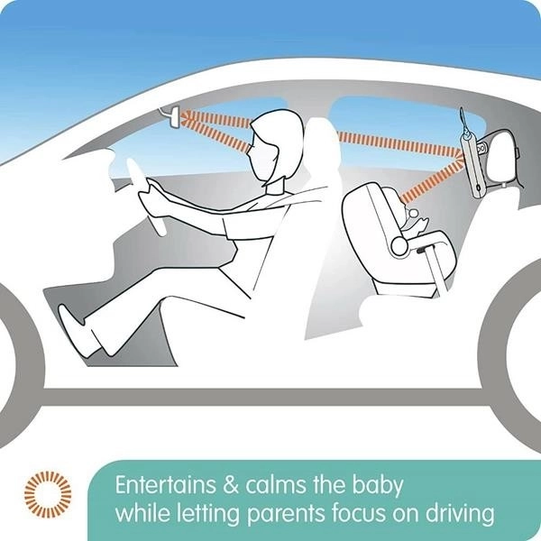 Grâce aux effets lumineux et aux mélodies, l’enfant reste diverti pendant le trajet, ce qui contribue à son apaisement.