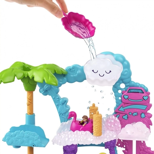 Vivez des aventures aquatiques et plein de surprises avec le set de jeu POLLY POCKET Station de lavage flamant rose. Inclus : une voiture à effet de changement de couleur, un ascenseur nuage, des brosses rotatives, un toboggan fleuri, 2 poupées, 2 animaux et des accessoires. Idéal pour les enfants dès 4 ans qui aiment le jeu créatif et interactif.