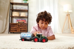 La remorque comprend une citerne à lait réaliste avec décors thématiques, échelle et béquille rabattable. Le set est prêt à l’emploi immédiatement – piles 2× AAA incluses, pour s’amuser dès l’ouverture.