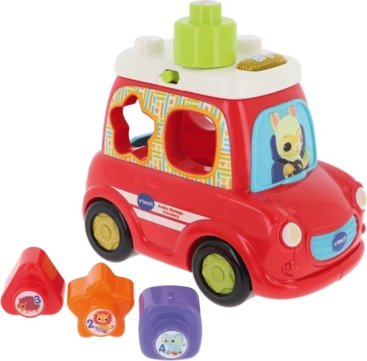 Le côté de la voiture sert de trieuse de formes et l’emballage comprend 4 blocs colorés de différentes formes, qui aident à développer la motricité fine, la logique et la coordination œil-main. Le jouet convient aux enfants de 6 à 36 mois et, grâce à la pile AA de démonstration incluse, il est prêt à l’emploi dès le déballage.