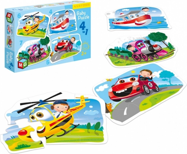 Puzzle Moyens de transport 4 en 1 est idéal pour les enfants dès 2 ans qui souhaitent commencer à assembler leurs premiers puzzles. Chaque puzzle comporte un nombre de pièces différent pour une difficulté progressive et le développement des compétences.