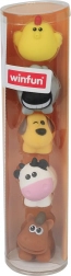 Le set comprend un chien, une vache, un poussin, un cheval et un mouton. Les enfants apprennent les noms et les sons des animaux, enrichissent leur vocabulaire et leur imagination grâce à des histoires créatives.