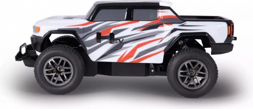 La voiture RC CARRERA GMC HUMMER EV offre des performances robustes et d’excellentes qualités de conduite sur route comme en tout-terrain. Sa carrosserie plastique allégée, ses grandes roues tout-terrain et ses amortisseurs de qualité garantissent stabilité et assurance même à des vitesses plus élevées. Grâce à une direction précise et à une accélération progressive, vous gardez toujours le véhicule sous contrôle.