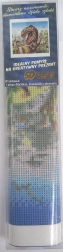 Le coffret comprend une trousse complète : toile avec motif préimprimé et couche adhésive, stylet applicateur, plateau, cire et assortiment de strass colorés. Pour travailler facilement, il est recommandé de soulever le film de protection de la toile par sections afin de garder la colle propre et d’assurer une bonne tenue des strass.