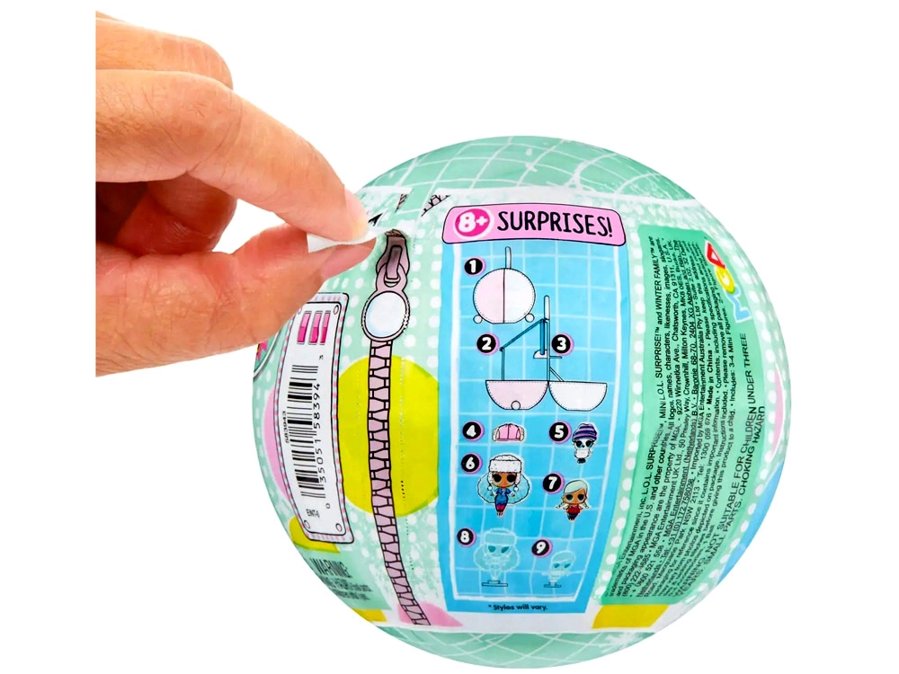 Chaque boule renferme 8 accessoires et surprises. L’ouverture « à glissière » est amusante et palpitante à chaque déballage.