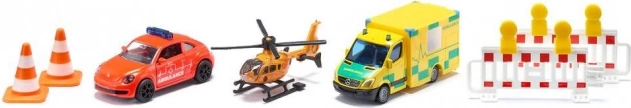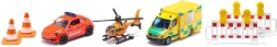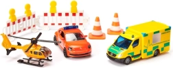 Préparez-vous pour des missions de secours palpitantes avec le coffret SIKU. L’emballage contient trois modèles métalliques détaillés – une ambulance, une voiture de secours et un hélicoptère de sauvetage – complétés par des cônes et barrières pour des scénarios réalistes. Grâce aux portes ouvrantes, au rotor pivotant et aux roues libres, les enfants profiteront de longues heures de jeu créatif.