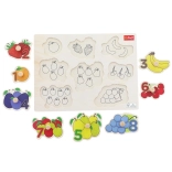 Découvrez des puzzles en bois de qualité sur le thème des fruits, qui développent l’habileté et la logique des enfants. Grâce à 8 pièces amovibles avec poignées en bois, le puzzle est facile à saisir, idéal pour les petites mains et convient à partir de 18 mois. Le support avec des illustrations en noir et blanc aide les enfants à associer correctement les formes et leur apprend à reconnaître les fruits de manière ludique.