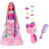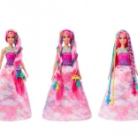 La poupée Barbie du royaume féerique Dreamtopia a de très longs cheveux avec des mèches arc‑en‑ciel qui invitent à la création de coiffures. Il suffit d’insérer 2 à 3 mèches dans l’outil de tressage et, d’une pression, de créer des coiffures torsadées envoûtantes. Trois clips arc‑en‑ciel maintiennent la coiffure en place, tandis que des barrettes colorées complètent le look final.