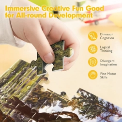 Le puzzle recto-verso en œuf de la collection DINO EGGs Collection de CubicFun offre un double plaisir. D’un côté, vous trouverez une illustration de ptérosaure, et de l’autre un motif abstrait avec des fossiles de dinosaures.