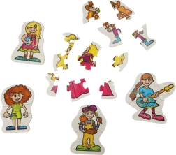 Le set contient au total 27 pièces réparties en 6 images sur le thème des filles. Grâce à l’épaisseur de 3 mm, les pièces sont faciles à tenir par les petites mains et s’emboîtent bien. Idéal comme cadeau et comme activité à partager avec les parents.