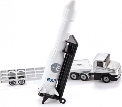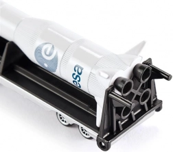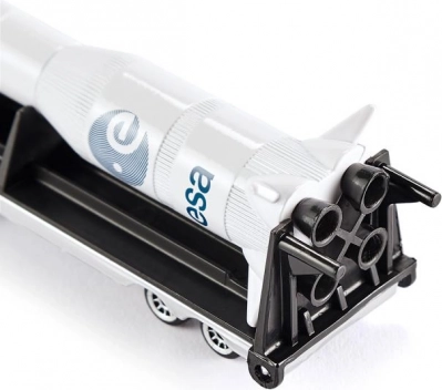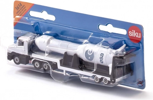 Ce modèle de tracteur routier avec plateforme de transport et fusée, réalisé avec précision, se distingue par des détails réalistes typiques de la marque Siku. La carrosserie en métal combinée à des accessoires en plastique garantit durabilité et sécurité pendant le jeu. La fusée peut être retirée du châssis et, grâce à son support stable, facilement « préparée pour le lancement », ce qui encourage la création d’histoires.