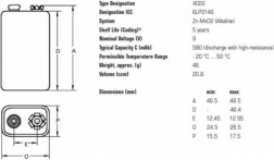 Technologie alcaline Zn–MnO2, capacité typique de 580 à 640 mAh et plage de températures de fonctionnement d’environ -20 °C à 50 °C pour des performances constantes.