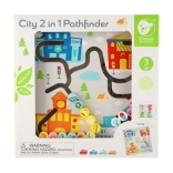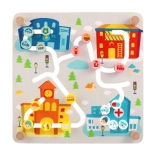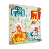 Ce labyrinthe en bois de qualité propose deux scènes éducatives en une. Côté ville, les enfants guident véhicules et personnages le long de trajectoires usinées vers l’hôpital, les pompiers ou la police, tout en exerçant l’orientation spatiale, la planification et la patience. Les graphismes colorés et les chemins clairement indiqués encouragent le jeu autonome ainsi que la coopération avec les parents.