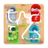 L’autre face est consacrée au recyclage, où les enfants acquièrent de manière ludique les bases du tri des déchets et associent les objets aux bons conteneurs. Grâce à la planche recto‑verso, un dialogue naturel s’installe sur la protection de la nature et le fonctionnement de la ville. La fabrication en bois solide (30 × 30 cm) et les bords lisses et arrondis garantissent sécurité et longévité.
