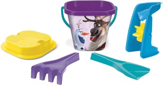 Un set amusant pour le bac à sable avec le populaire motif FROZEN (La Reine des neiges)seau, une pelle, un râteau, un tamis et un moulin pour des jeux de sable sans fin. Des dimensions compactes assurent un transport et un rangement faciles.