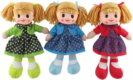 La poupée est disponible en plusieurs couleurs attrayantes avec de jolies petites robes à pois. Les motifs des robes peuvent différer des illustrations. Il n’est pas possible de choisir un vêtement précis, uniquement la couleur – ainsi chaque poupée est un peu unique.