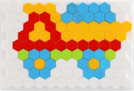 Plongez dans un monde de couleurs et de formes avec cette mosaïque de construction. La base blanche, rappelant un nid d’abeilles, permet de disposer des pièces en plastique colorées. La mosaïque favorise la créativité, les compétences spatiales et le développement de la motricité fine des enfants.