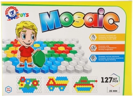 Grâce à la possibilité de créer ses propres motifs et images, cette mosaïque stimule l’imagination des enfants ainsi que leur pensée logique.