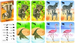 Cartes à jouer pour le célèbre jeu pour enfants Le Pouilleux avec des motifs d'animaux de safari, apportant beaucoup de plaisir et de suspense.
