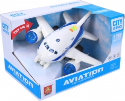Avion en plastique à propulsion à inertie qui ravira tous les petits et grands passionnés d'avions! Lorsqu'on appuie dessus, il émet des effets lumineux et sonores qui ajoutent une touche d'authenticité au jeu.