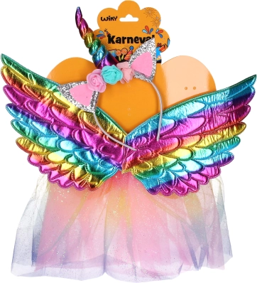 Ce set ludique sur le thème de la licorne fera naître un sourire sur le visage de chaque enfant. Grâce à la combinaison d’un serre-tête à corne, des ailes et d’une jupe, vous créez facilement un costume saisissant pour le carnaval, un bal masqué ou une fête à thème.