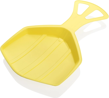 Luge pour enfants Pedro jaune : légère 0,2 kg, charge 50 kg, dimensions 57×33×5 cm, résistante de -30 à 70 °C. Amusement sur la pente et pour construire des châteaux de neige.