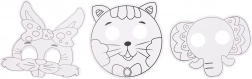 Masque à colorier ludique au format 22,5 × 20,5 cm avec 4 feutres inclus et 6 motifs différents – idéal pour les activités créatives, les jeux et les fêtes.